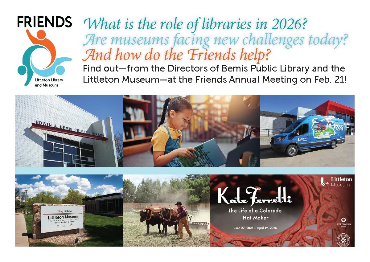 The Friends of the Littleton Library and Museum allow you to serve your community, meet your neighbors, and ensure that the Library and the Museum remain vital links to our future and our past.